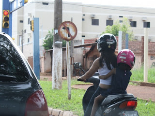 Transportar crianças menores de sete anos em motocicletas, além de ser infração de trânsito pode ser muito perigoso.